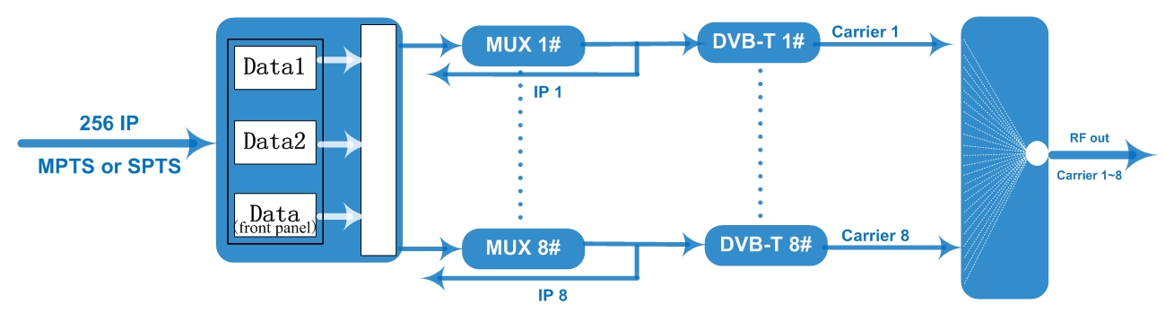 256 IP input, 8ch DVB-T carriers out, 8 IP out |