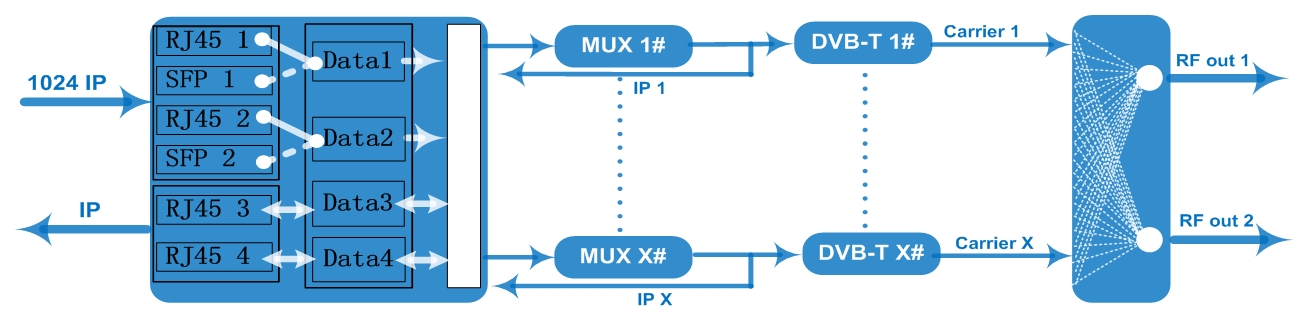 1024 IP input, 32ch DVB-T carriers out, 32 IP out |