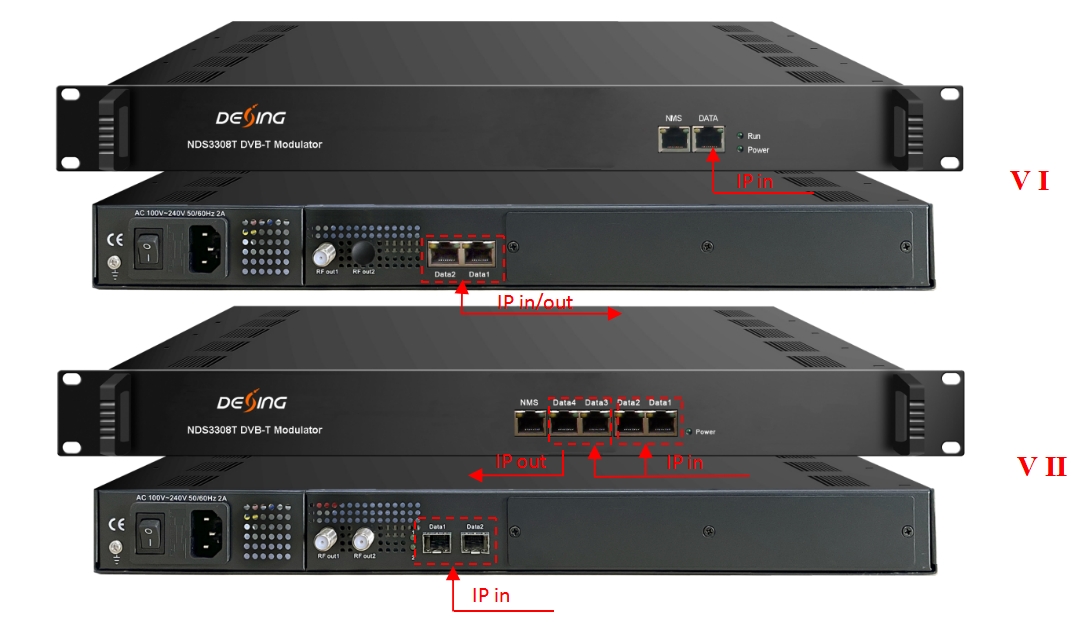 Max 256 IP input through 3 (front-panel Data port, Data 1 and Data 2) 100/1000M Ethernet Port (SFP interface optional). - For Version I Max 1024 IP input through data ports 1 to 4 100/1000M Ethernet Ports (RJ45 and SFP interface alternative). –For Version II |